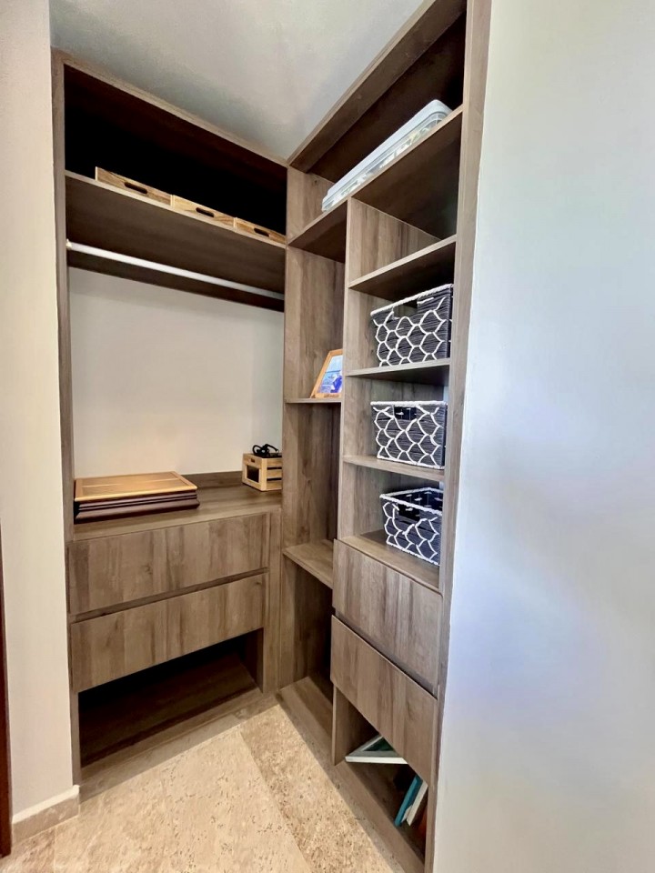 This condo includes exclusive upgrades such as a granite bar on the terrace, granite countertops in all bathrooms, extended shower with bench, hammock hooks, and an oversized pantry.